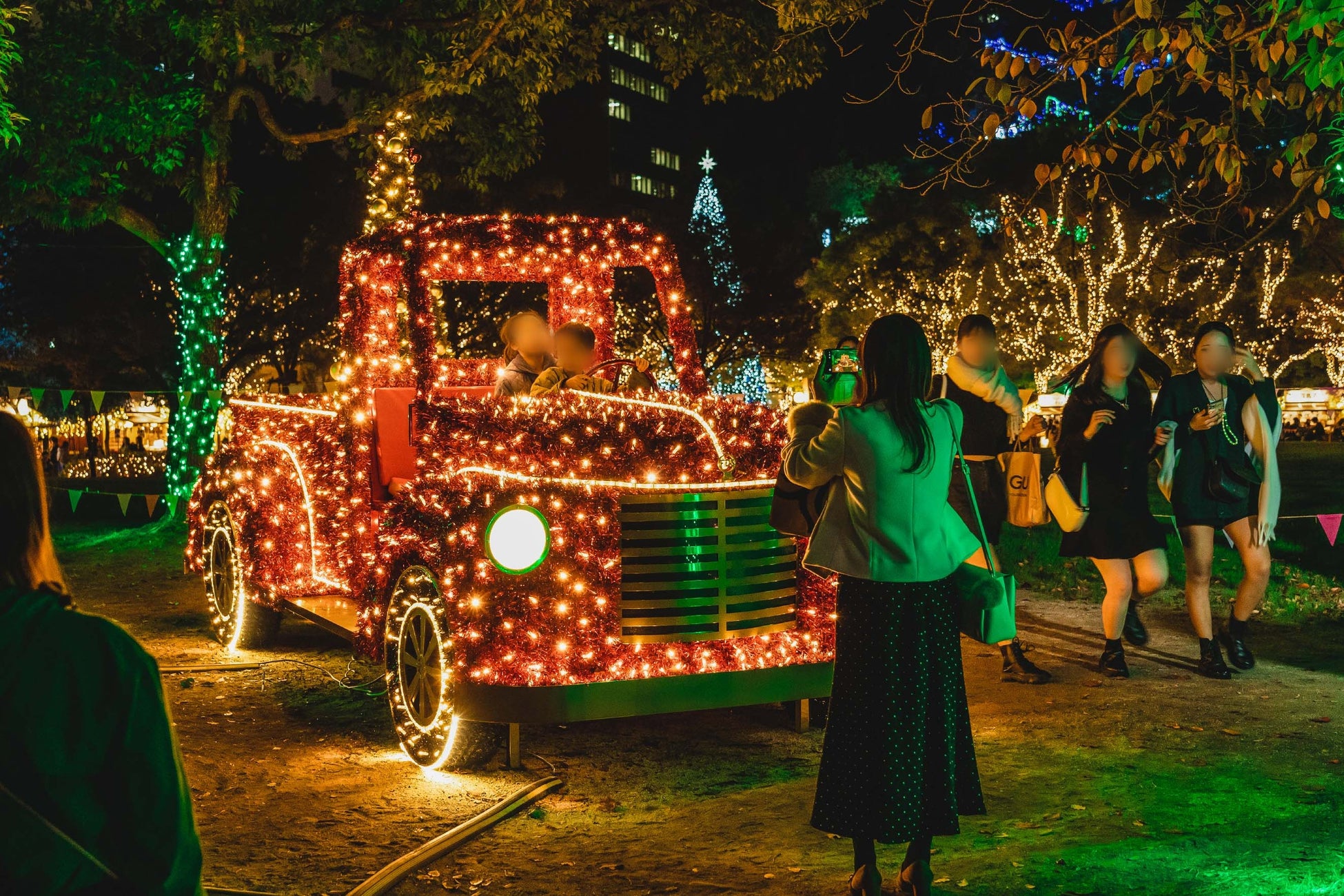昨年登場した車やクマのオブジェに加え、世界から集めた巨大ハートやサンタ列車、くるみ割り人形、パラグライダーサンタ、そして会場デザインのイヤーマグオブジェなど、今年はさらにフォトスポットが満載です。