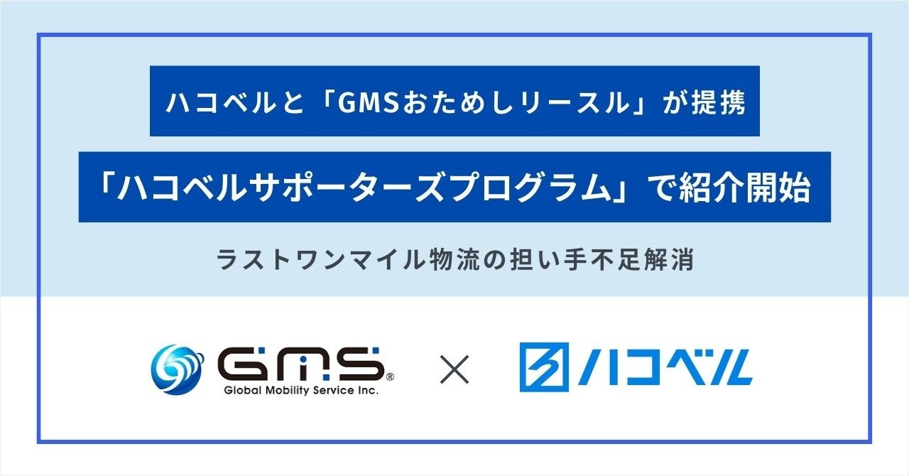【提携お知らせ】配送業務の開業負担を低減する「GMSおためしリースル」がハコベルサポーターズプログラム」との提携決定!ラストワンマイル物流の担い手不足解消に貢献
