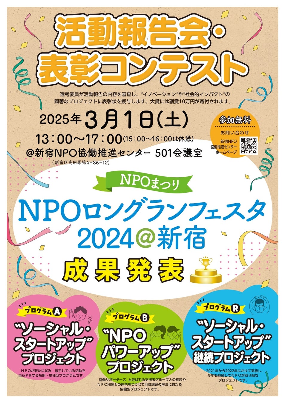 【『NPOロングランフェスタ2024@新宿』の活動報告会・表彰コンテストを3月1日(土)に開催いたします!】