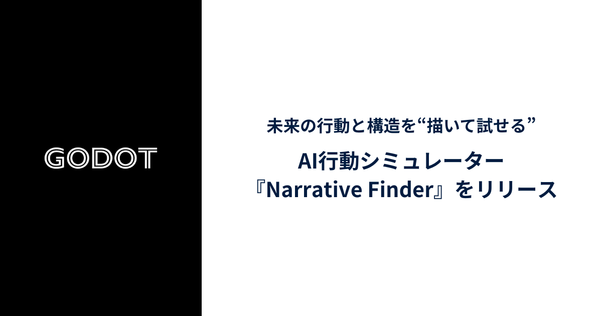株式会社Godot(ゴドー/兵庫県神戸市、代表取締役 森山 健、以下「Godot」)は、複雑な行動構造をAIで動的に可視化する新プロダクト『Narrative Finder』を2025年11月25日(火)にリリースいたしました。