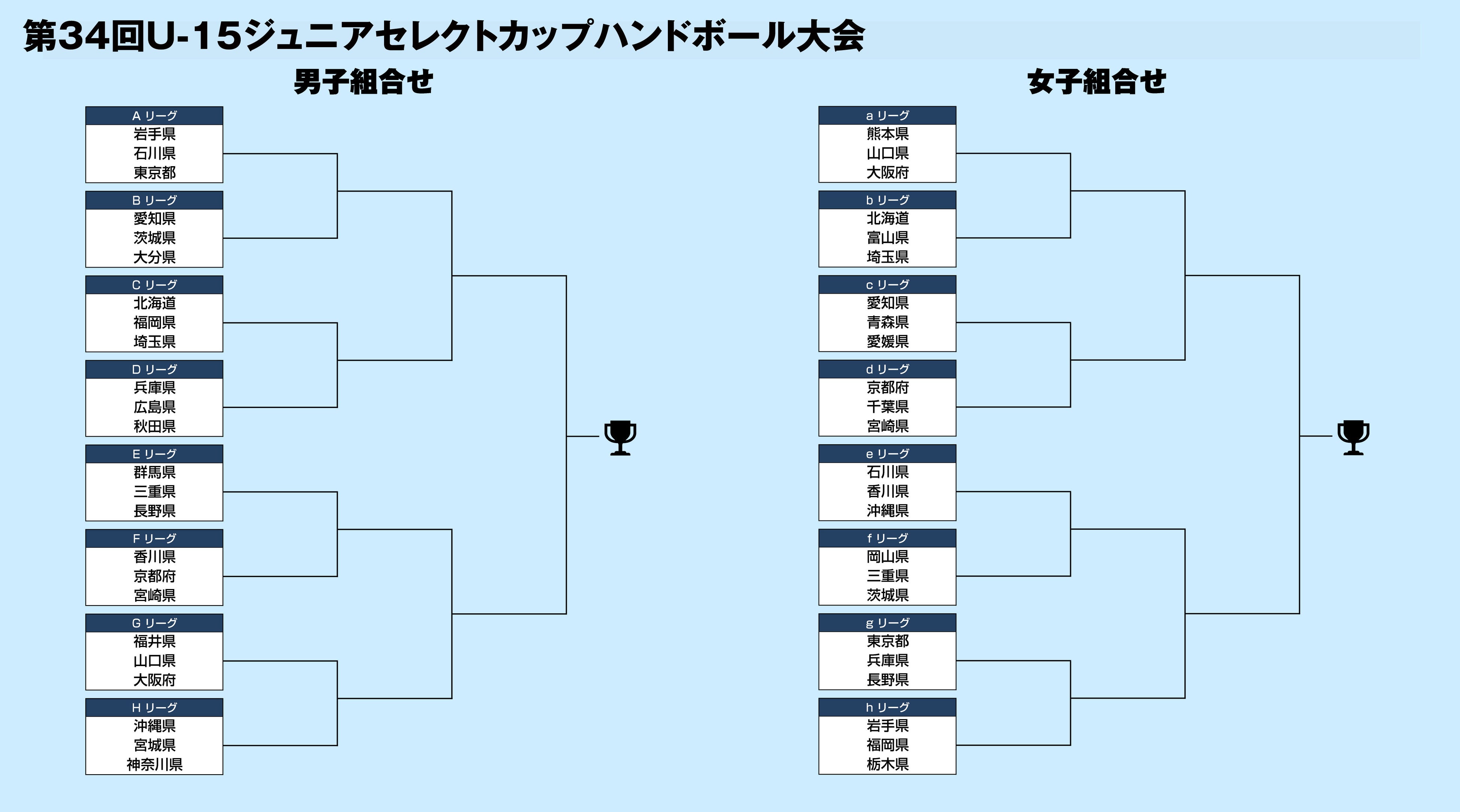 第34回U-15ジュニアセレクトカップハンドボール大会 組み合わせ抽選結果のお知らせ