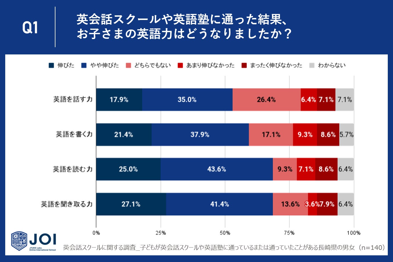 今回は、子どもが英会話スクールや英語塾に通っているまたは通っていたことがある長崎県の男女140人に、英会話スクールや英語塾の効果に関するアンケート調査を実施しました。