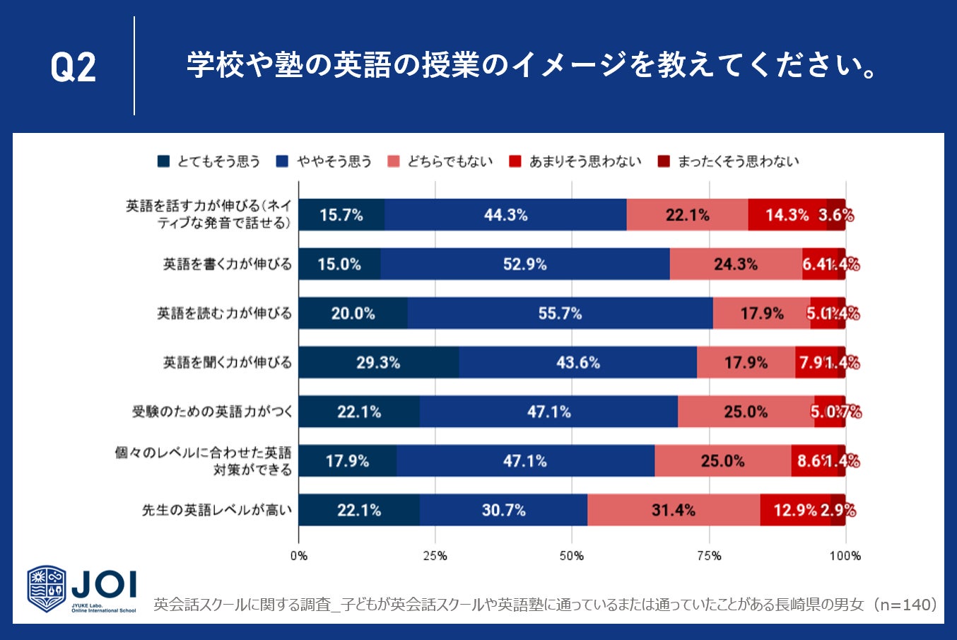 【長崎県】子どもの英会話スクールに明確な効果を感じなかった人は25.0%~40.0%。学校や塾の英語の授業に対しても24.3%~47.1%の人が明確な効果を感じず。