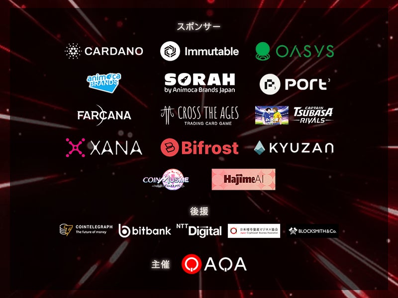 Cardano、Immutable、Oasys、Animoca Brands Japan、SORAH、Port3 Network、Farcana、Cross The Ages、キャプテン翼 -RIVALS-、XANA、Bifrost、Kyuzan、コインムスメ-CoinMusme-、Hajime AI