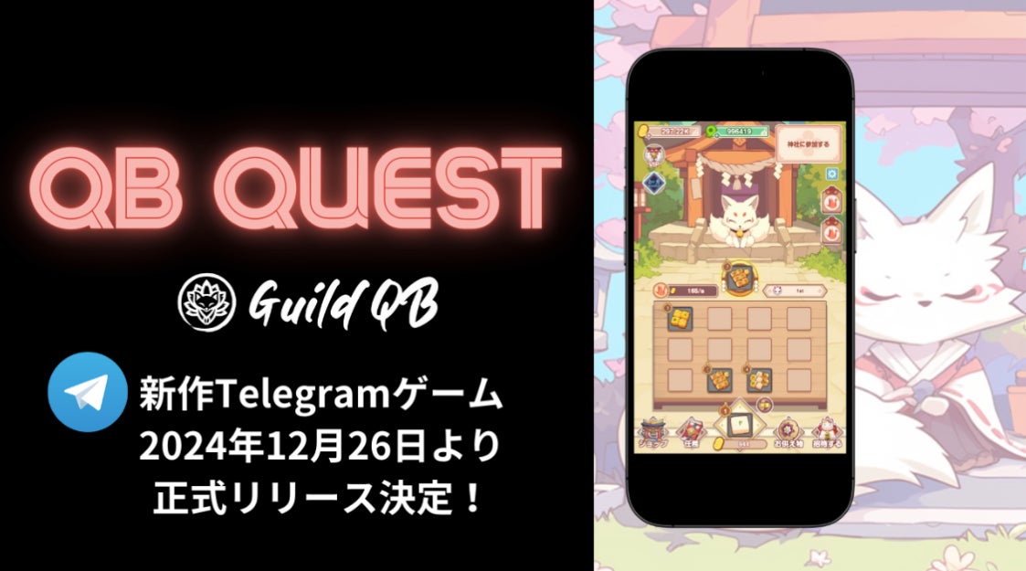 「QB Quest」はTelegramアプリ内で遊べるCatizenライクなミニゲームです。プレイヤーは神社を舞台に、狐様へのお供物アイテムを合成しレベルアップを目指しながら、より多くのコイン獲得を狙います。難しい操作や事前準備は不要で、Telegramを使っている方ならすぐにスタート可能。Web3に詳しくない方でも気軽に楽しむことができます。