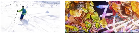 VRで体験できる八甲田山バックカントリーの映像/大型LEDで視聴できる青森ねぶた祭りの映像