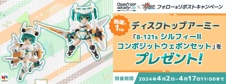 対象の投稿をリポストしていただいた方の中から抽選で1名様に、『シルフィーⅡ コンポジットウェポンセット』のプラモデルをプレゼントします!