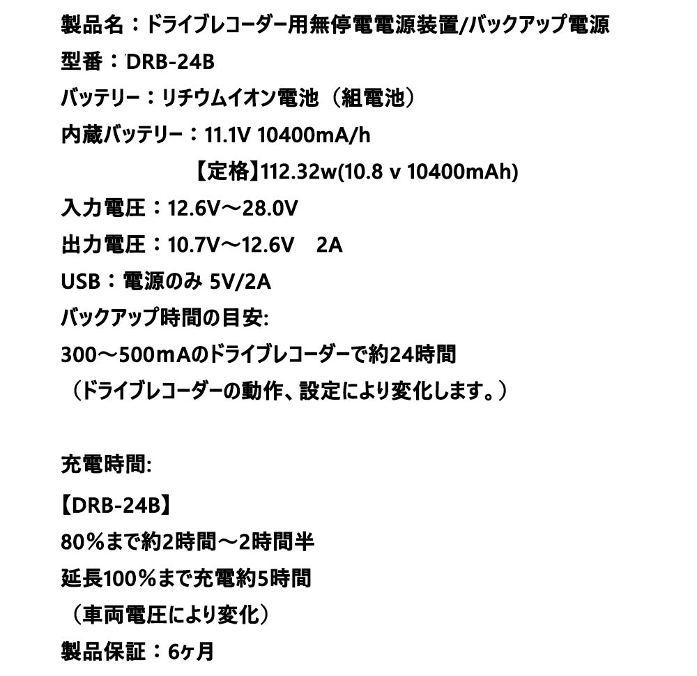 単なるモバイルバッテリーのように電力を供給するだけでなく、DRB-24Bは出力電圧がエンジン停止、エンジン始動でドライブレコーダーへの電力が瞬停しない、無停電電源と呼ばれる機器です。