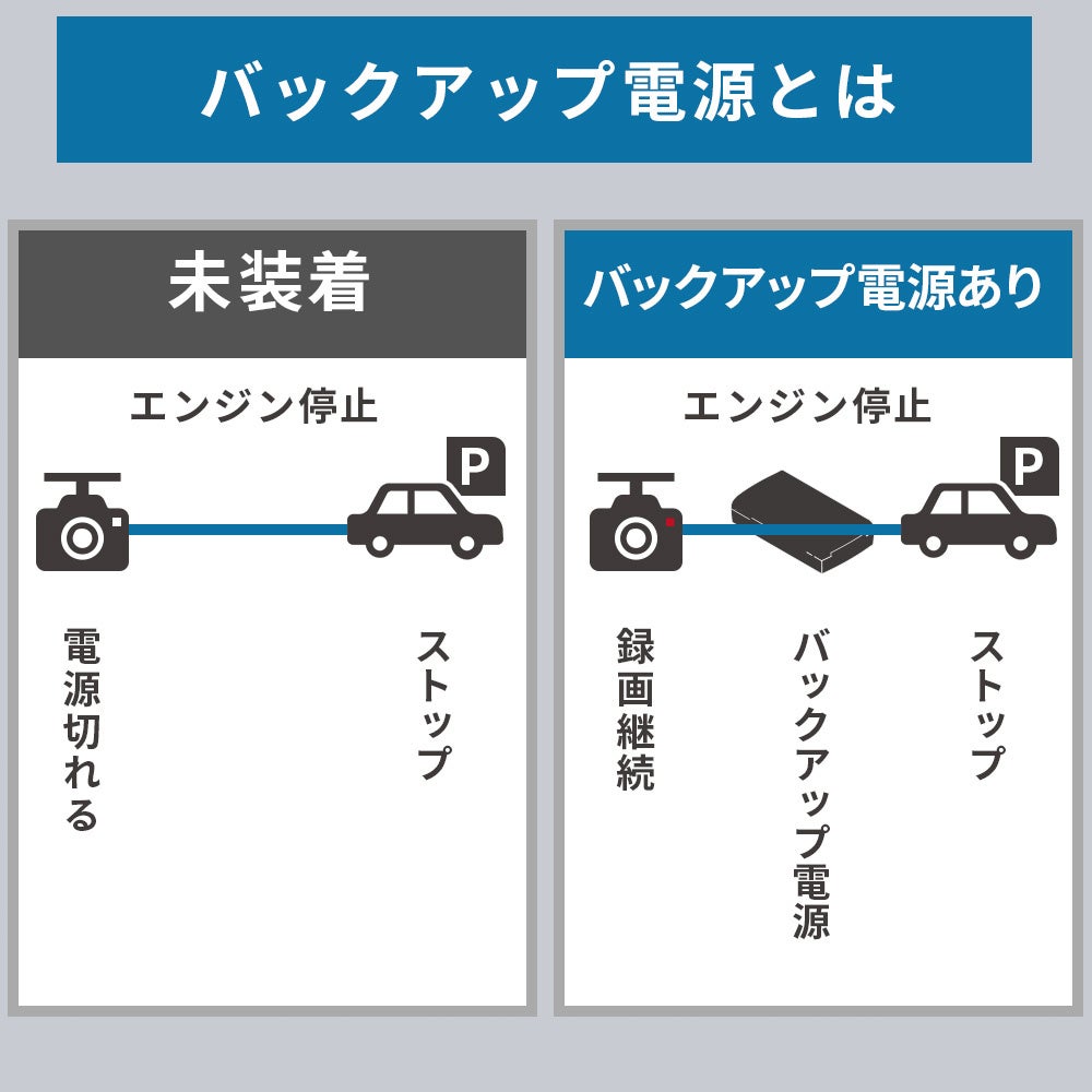 ドライブレコーダー用バックアップ電源はエンジンを停止しても充電した電力でドライブレコーダーを動かし続けるという製品です。