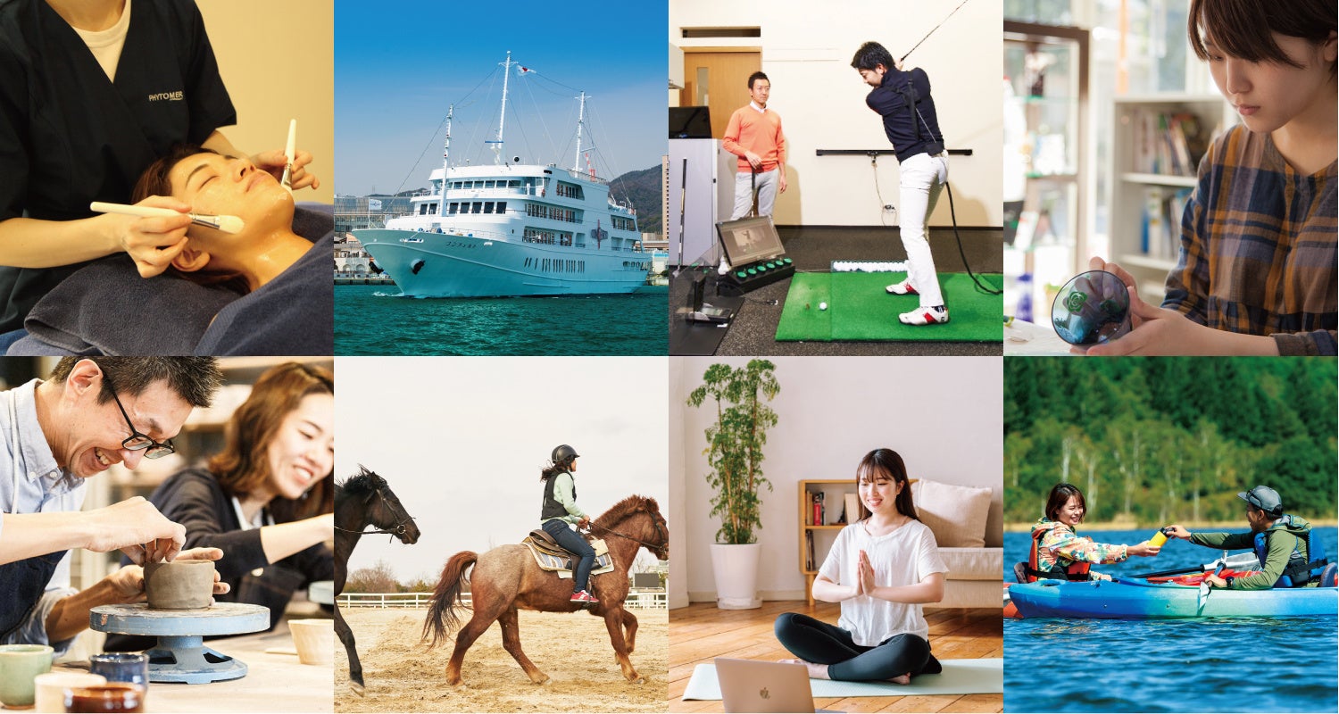 選べる体験数が最も多い、体験のカタログギフト。体を使ってめいっぱい遊んだり、街を離れて自然の中でリフレッシュしたり、自分のためにゆっくりリラックスしたり。次の休日が楽しみになる体験を幅広く集めました。1人向けのコースも2人で体験できるコースも、両方充実しています。