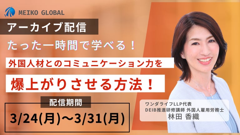 外国人材の採用および教育・研修のワンストップサービスを展開する明光キャリアパートナーズが、昨年大きな反響を呼んだ多文化マネジメント研修の無料セミナーを期間限定でアーカイブ配信いたします。