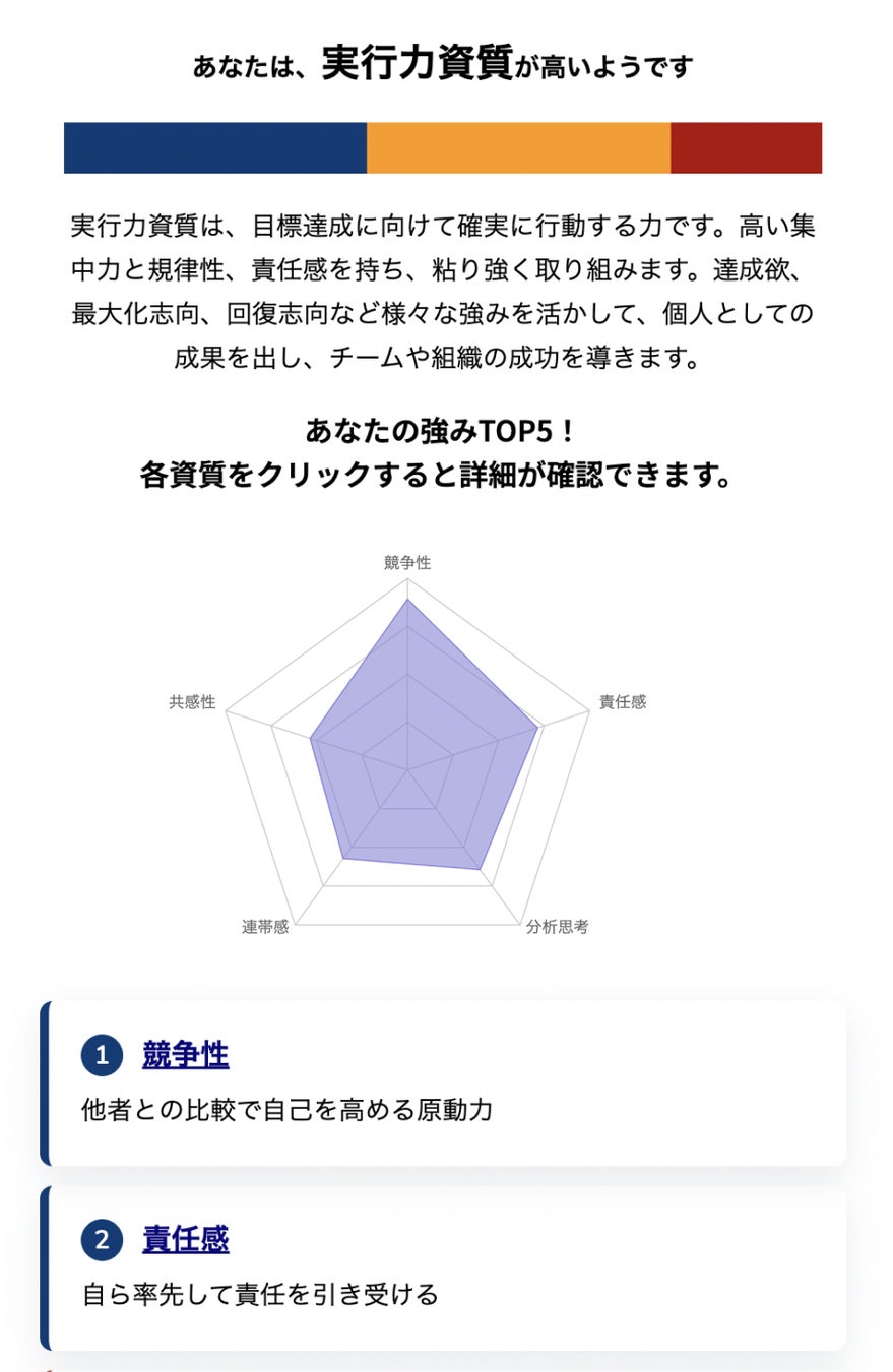 特に強い上位5つの強みを知ることが出来ます。さらにプレミアムプランを利用すれば、