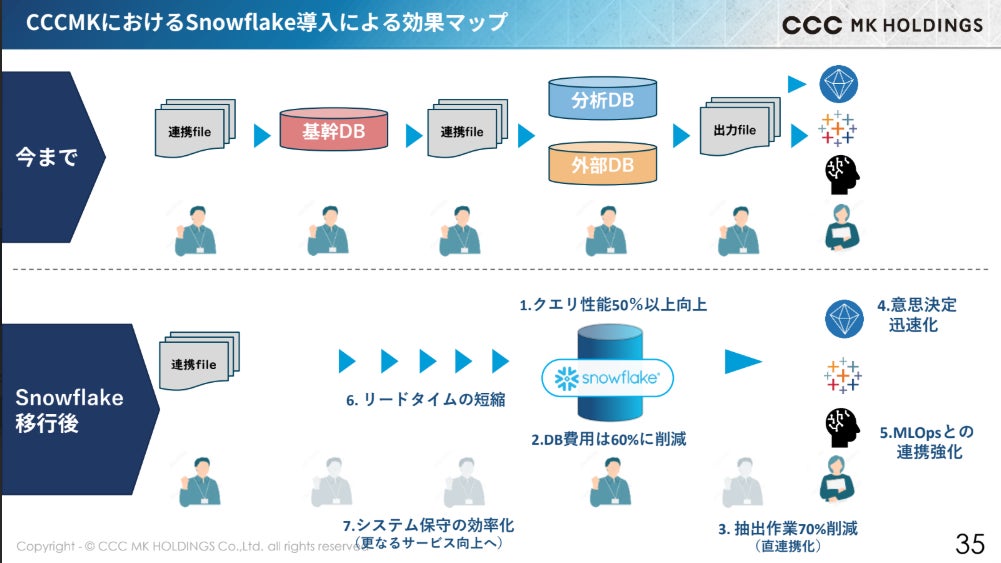 AIデータクラウドを提供するSnowflake合同会社(所在地:東京都中央区、社⻑執⾏役員:東條 英俊、以下Snowflake)は1月27日、CCCMKホールディングス(以下CCCMKホールディングス)によるSnowflakeを用いたデータ活用に関する説明会を報道機関向けに開催しました。当日はCCCMKホールディングス IT戦略本部 本部長の松井太郎氏が登壇し、全社的なデータ活用について解説しました。