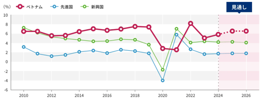 ベトナムは、新興国の中でも相対的に高い経済成長を続けており、今後も高成長が続くと予想されています。