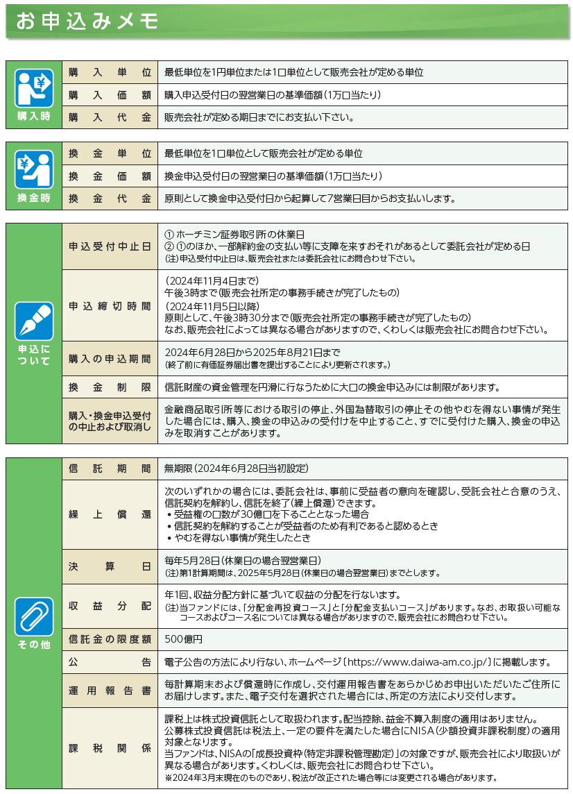 このたび、大和アセットマネジメント株式会社(以下、「当社」)は、2024年6月28日に「iFreeNEXT ベトナム株インデックス」(以下、「当ファンド」)を設定します。