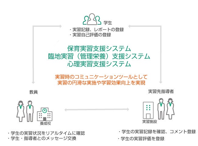 学生・教員・実習先指導者の3者間における円滑なコミュニケーションを支援