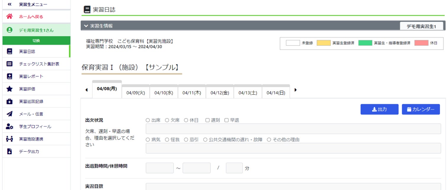 学生による実習記録や、教員・実習先指導者による各実習生の実習状況確認、コメント・評価入力などをシステム上で実施可能です。