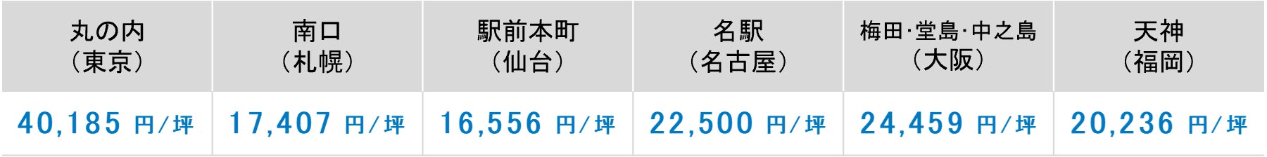 その他の全国6大都市の大規模ビル(東京・札幌・仙台・名古屋・大阪・福岡)のマーケットデータをまとめた各都市のプレスリリースは、下記リンク先よりダウンロードいただけます。
