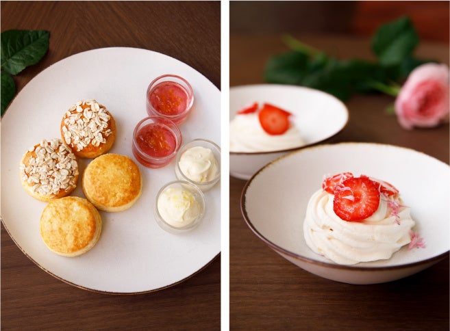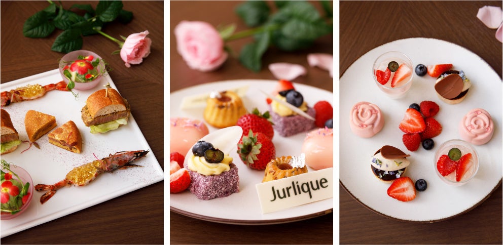 オーストラリアにルーツを持つブランド「ジュリーク」の世界観を、食を通じて表現した特別なアフタヌーンティーをご用意しました。テーマは「オーガニック」と「ナチュラル」。ホテルシェフが厳選した素材と技で、上質なひとときを演出いたします。メニューには、ブランドを象徴する「ローズ」をモチーフにしたサラダやムースをはじめ、オーガニック小麦やドライフルーツなど、素材そのものの風味を大切にした一品を揃えました。さらにハーブやラベンダーをアクセントに加えることで、華やかな香りと奥行きある味わいをお楽しみいただけます。また、オーストラリアを代表する伝統菓子「ラミントン」や「パブロバ」をシェフがホテルスタイルにアレンジ。見た目にも華やかなラインナップは、ティータイムをより特別なひとときへと導きます。