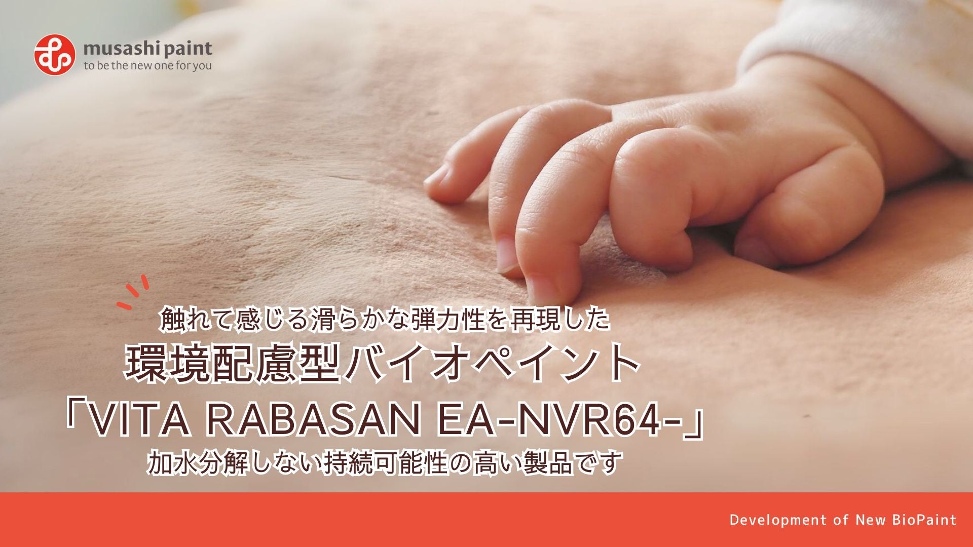 【東京都豊島区、3月】- 武蔵塗料株式会社(本社:東京都豊島区、代表取締役社長:福井裕美子)は、滑らかな弾力性を再現した加水分解しない塗料「VITA RABASAN(ヴィータラバサン)EA-NVR64-」を、植物由来の原材料を使用した環境配慮型塗料バイオペイントのラインナップに加えました。