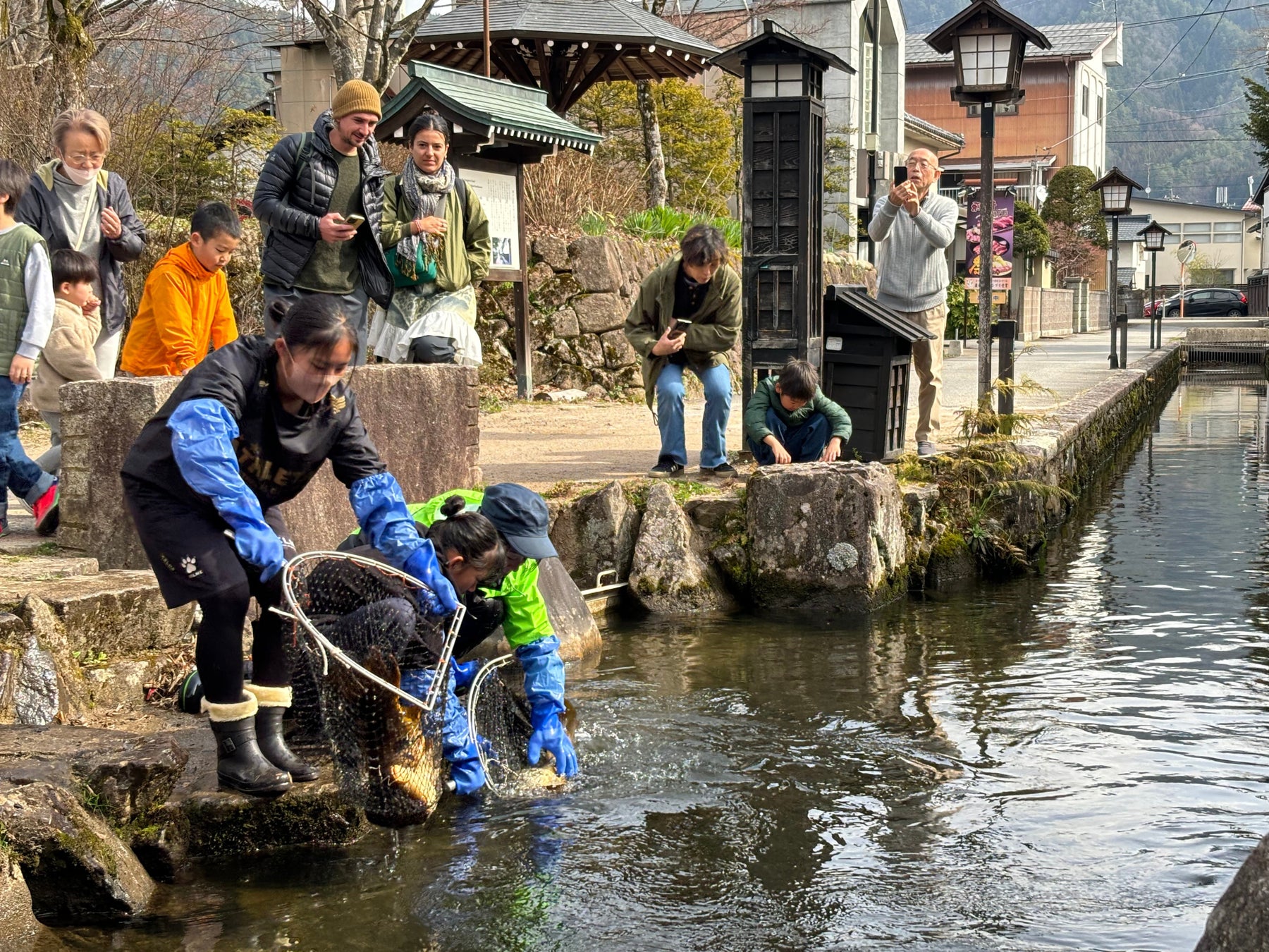 岐阜県最北端に位置し、北アルプス立山連峰や世界遺産白川郷、小京都飛騨高山に囲まれたまち「飛騨古川」。その観光名所となっている「瀬戸川」で、近くの池で越冬した鯉を川に戻す「鯉の引越し」が行われました。