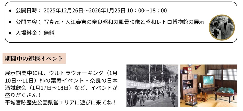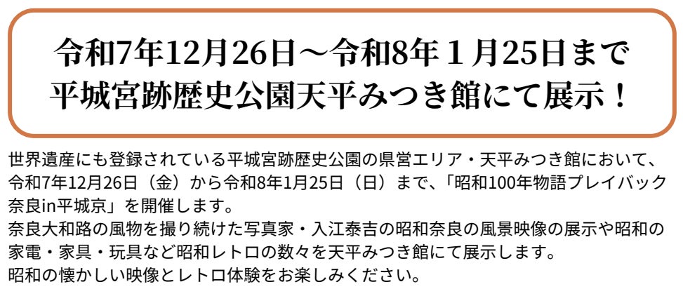 「昭和100年物語プレイバック 奈良in平城京」の開催