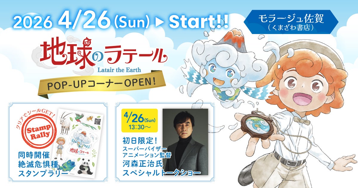 CLASS EARTH株式会社(東京都中央区)は、2026年4月26日(日)より、モラージュ佐賀内のくまざわ書店にて、絵本『ラテールとアースセイバー 〜絶滅危惧種が教えてくれること〜』の期間限定POP-UPコーナーの開催が決定しました。