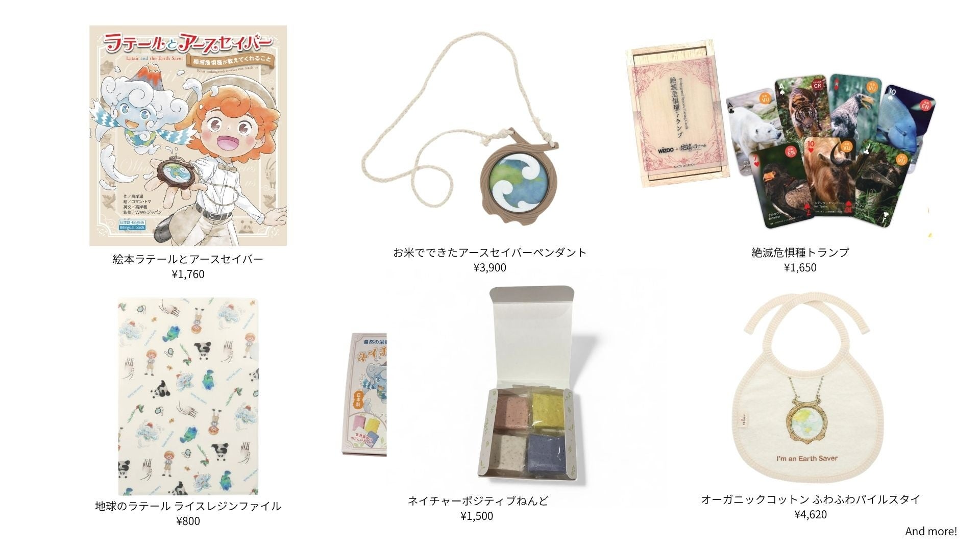絵本『ラテールとアースセイバー 〜絶滅危惧種が教えてくれること〜』の販売をはじめ、作中でもアースセイバーのカナデが身につけているペンダントなど、関連グッズを販売いたします。