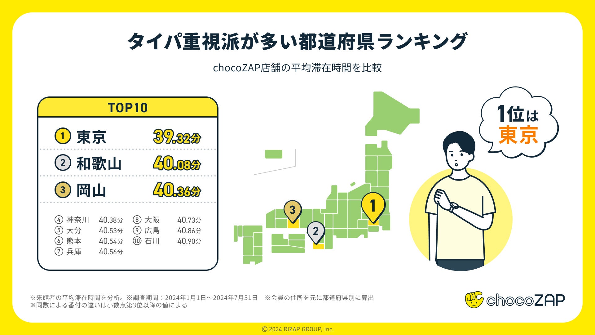 RIZAPグループ株式会社(代表取締役社長 瀬戸健、本社:東京都新宿区)の連結子会社であるRIZAP株式会社は、コンビニジム「chocoZAP(チョコザップ)」の顧客属性、運動、体組成、来館、サービス予約、利用マシン等、顧客データを分析し、47都道府県ランキングにまとめましたのでご報告いたします。これらはchocoZAP会員へスターターキットとして提供している体組成計、ヘルスウォッチをはじめ、アプリのサービス利用、会員情報、店舗入退館等の膨大なライフログデータと、あらゆるデータ処理を可能とする分析リソースの経営資源を基盤としたインフォグラフィックスです。また県民博士(リサーチプロデューサー)として活躍中のディグラム・ラボ株式会社(代表取締役 木原 誠太郎、本社、東京都港区)の木原誠太郎さんに各項目を考察いただきましたので併せて発表いたします。