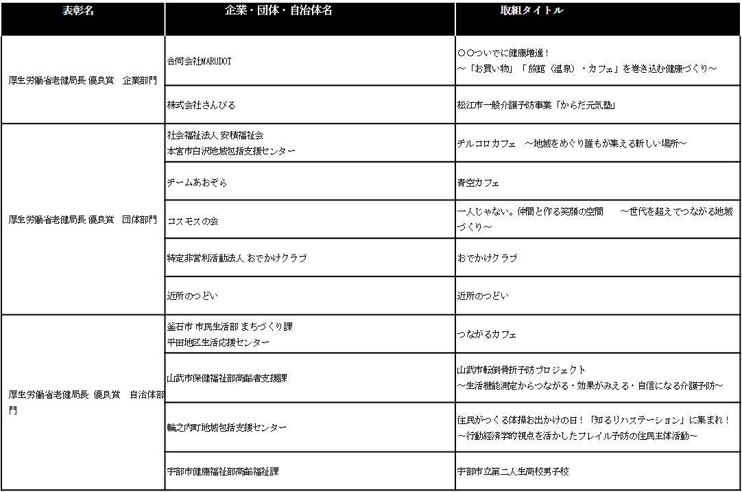 <介護予防・高齢者生活支援分野><生活習慣病予防分野>」最終審査・表彰式を実施健康寿命延伸に向けた優れた取り組みを顕彰