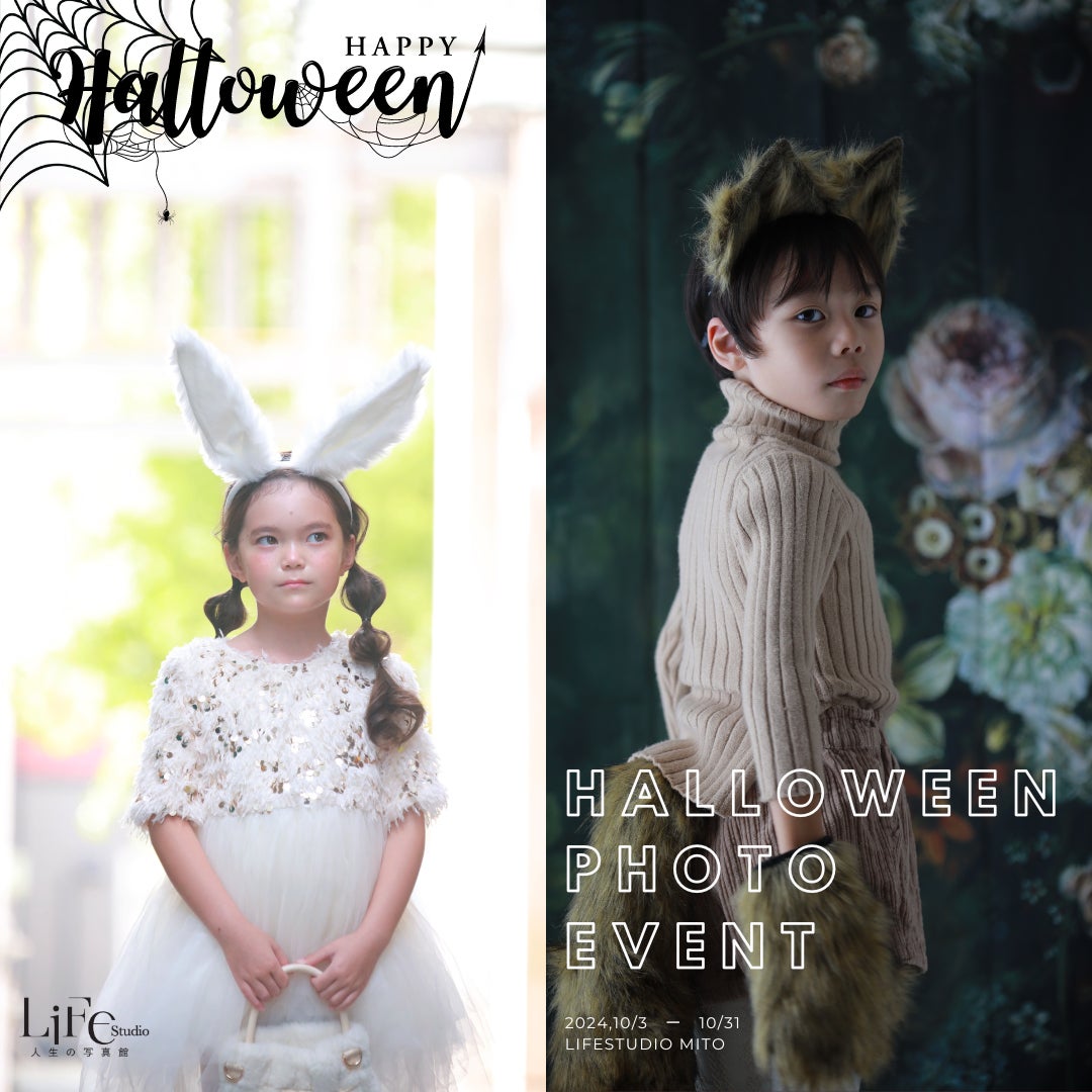 ライフスタジオ水戸店は、お客さまに親しまれて、今年から京成百貨店にこだわりの新しい店舗を作り上げ、ぜひ多くのご家族にライフスタジオと水戸店を知って楽しんでいただくために、ハロウィン撮影イベントを開催します。