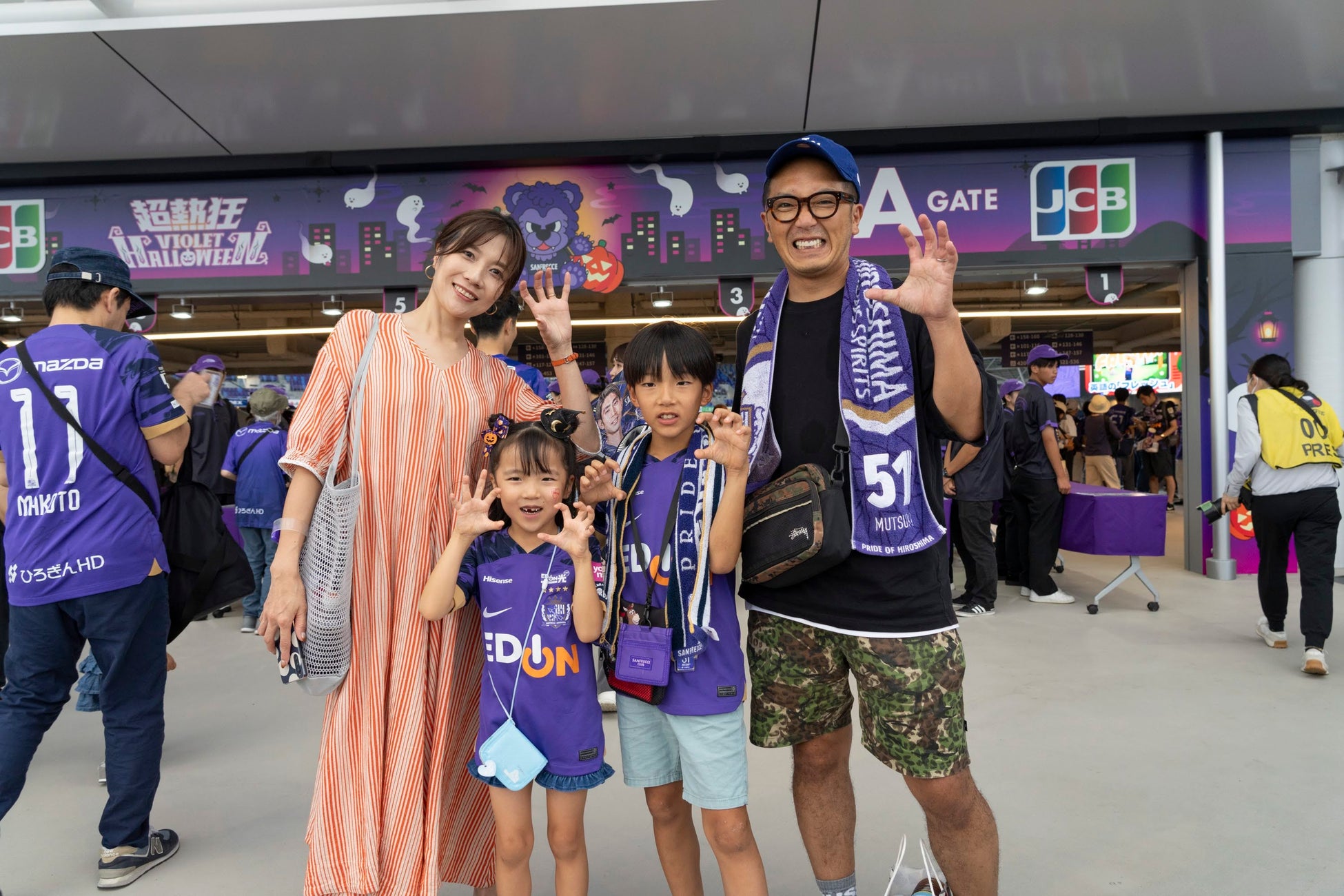 A&Dゲート限定でハロウィーン仕様に装飾されたゲートを潜り抜けたみなさんは、モンスターサンチェのお友達「モンスターズ」と「モンスターキッズ」に変身!これから始まる「超熱狂バイオレットハロウィーン」に期待が高まります!