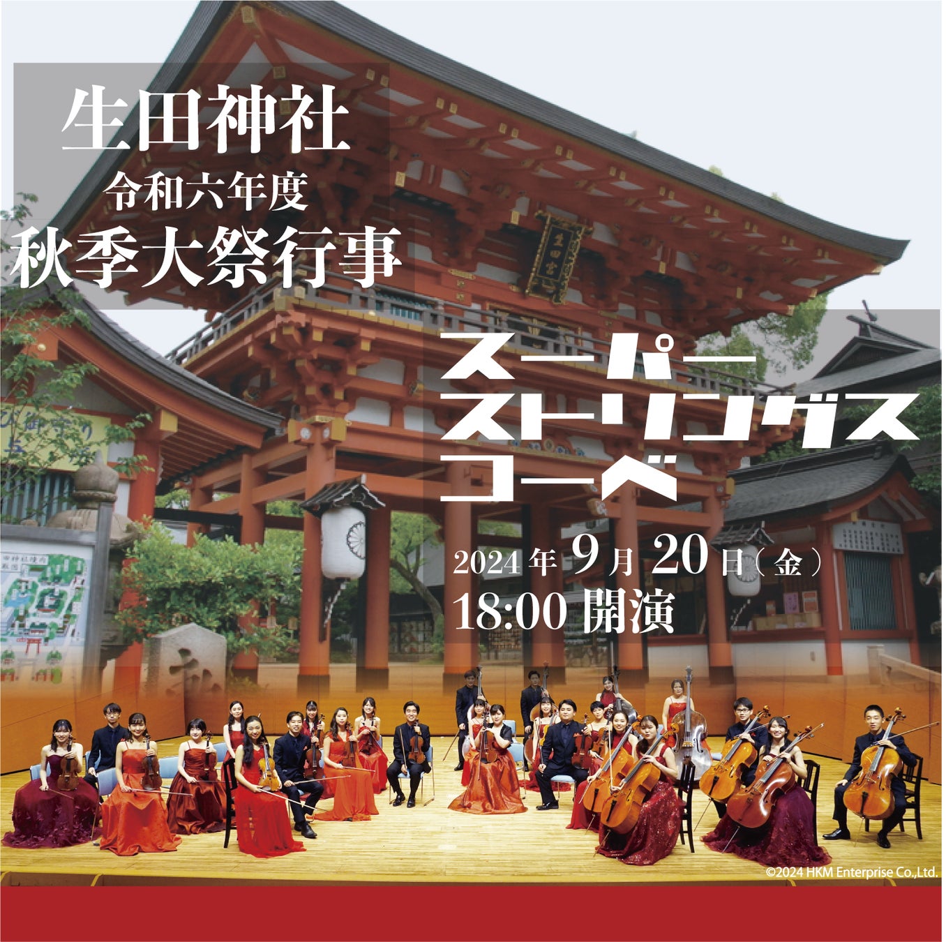 □9月20日(金)に開催される生田神社「秋季大祭行事」にて、スーパーストリングスコーベの特別演奏会を開催いたします。(18時00分開演 19時00分終了)