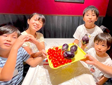 『本気野菜の夏カレーをみんなでつくろう』は、サントリーHDグループである、サントリーフラワーズ株式会社が作る味が濃い野菜『本気野菜(純あま[ミニトマト]、とろとろ炒めナス)』を使ってみんなで野菜カレーづくりを体験するイベントです。また、こどもたちが作った料理を大人へ販売する「商い体験」も行います。