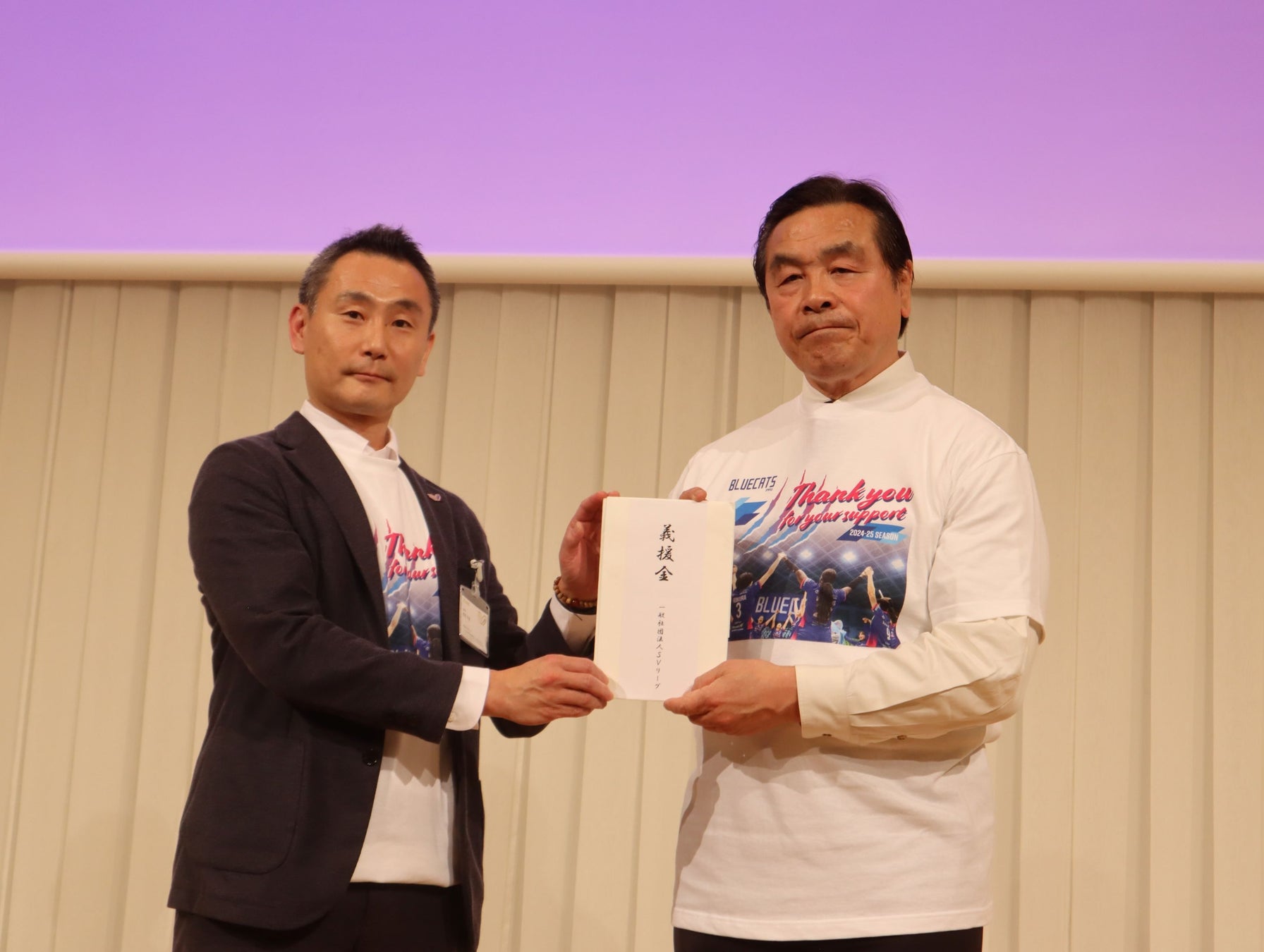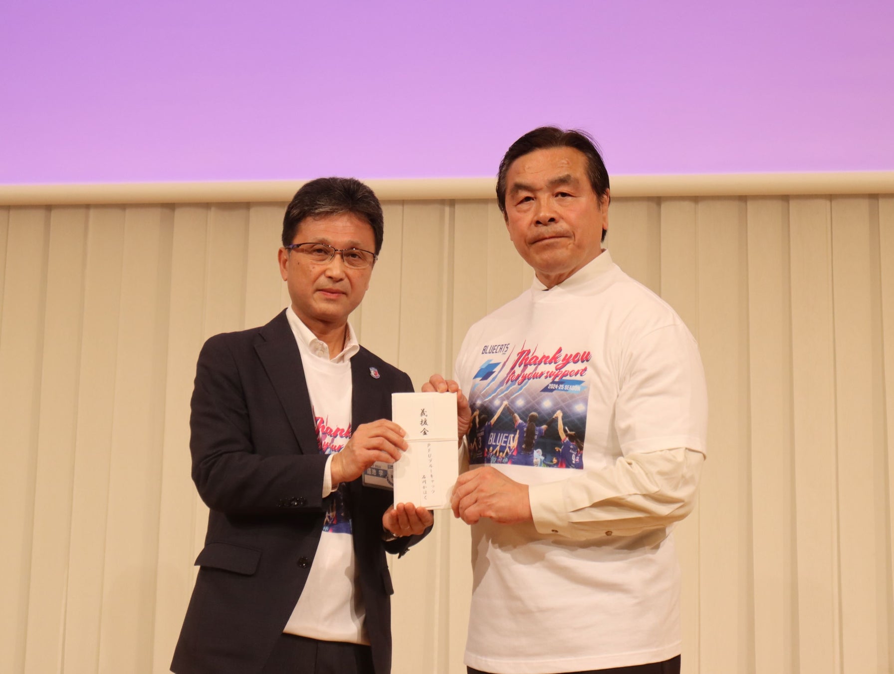 2025年5月9日(金)に、関係団体・スポンサー様を対象とした2024-25シーズン報告の「感謝の集い」において、SV.LEAGUEおよび PFUブルーキャッツ石川かほくより「能登復興支援義援金目録贈呈」を実施いたしましたので、お知らせいたします。