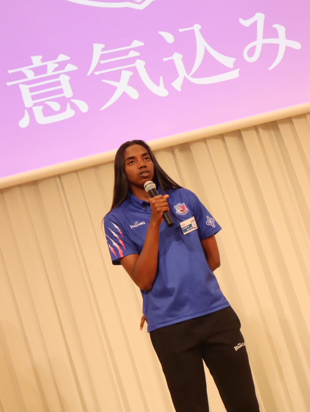 また、報告会のなかでは、女子日本代表チームの強化合宿に「練習生」として参加することになった(※)バルデス・メリーサが意気込みを話しました。