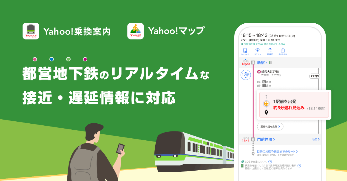 【LINEヤフー】Yahoo!乗換案内とYahoo!マップ、都営地下鉄のリアルタイムな接近情報や遅延情報の提供を開始