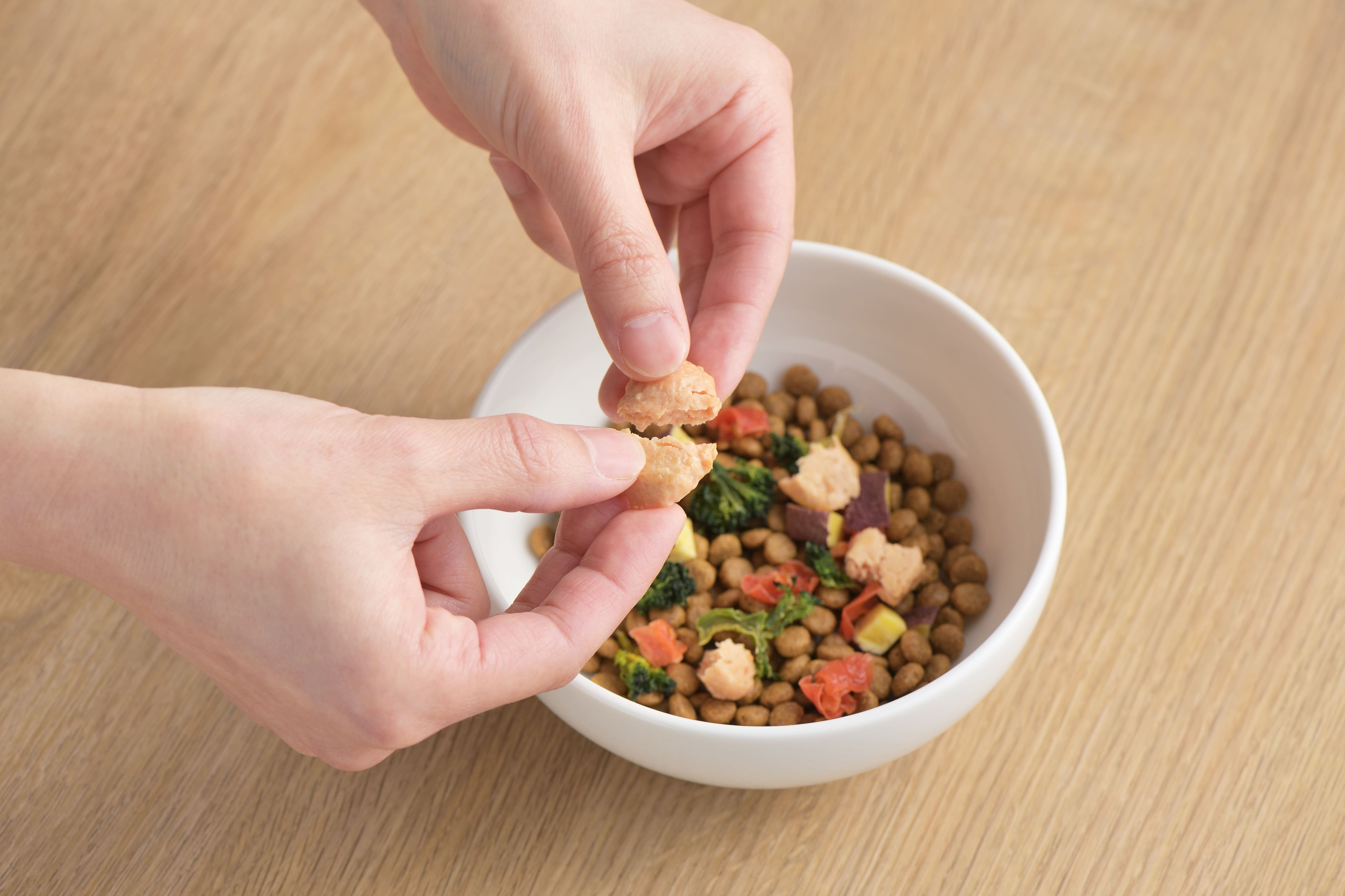 ペットオーナー様への独自アンケートをもとに開発した第一弾の本製品は、「選ぶ楽しさ」「食べてくれる喜び」「素材のおいしさ」の3つを詰め込みました。国産・無添加・米糀入りで素材本来のうまみを引き出し、2025年春の販売開始以降、食いつきの良さが好評です。ペットイベントでは緊張で食べない犬も多い中、本製品はその場で口にする例が多く、オーナー様を驚かせる場面も。年齢や手術などにより食欲が落ちた際のトッピングとしても愛用されています。