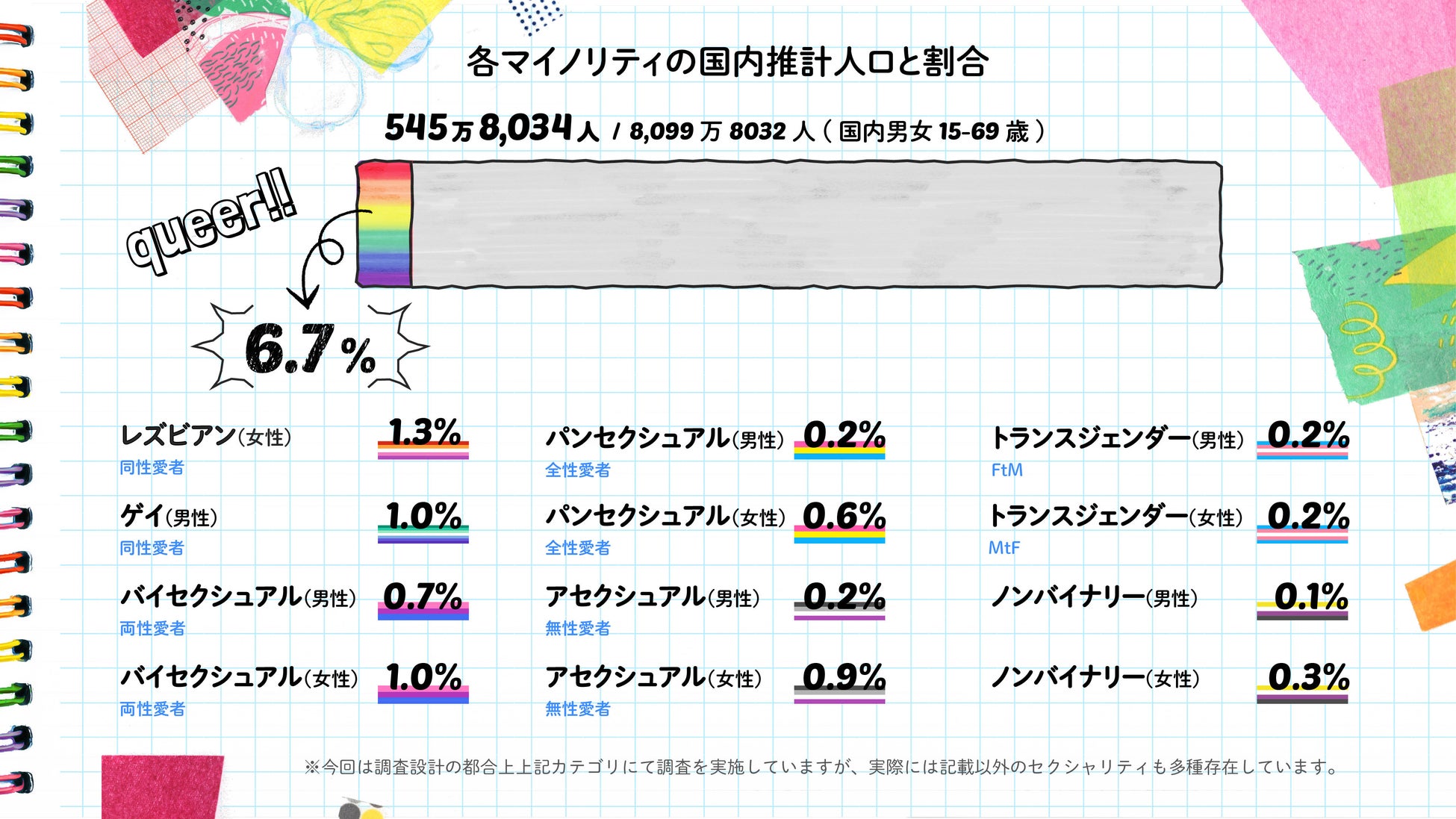 全12分類で見る性の多様性。「性的マイノリティ層」は全体の6.7%で推計人口は約546万人規模。