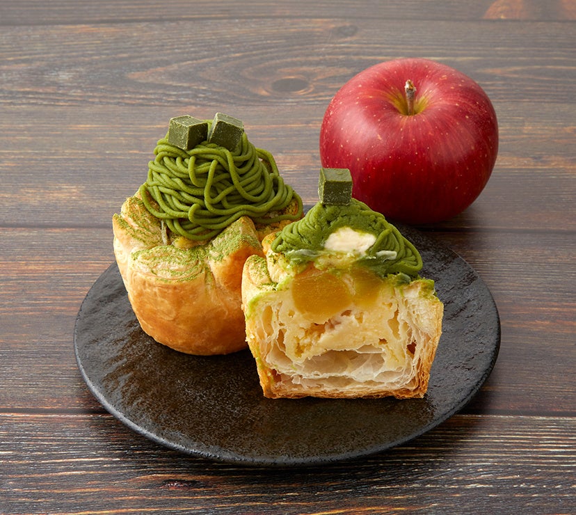 新作「Apple Cup抹茶」は、すがすがしい香りとうまみ・渋みが調和した抹茶餡と、コクのあるカスタードが入ったアップルパイとの「和」と「洋」の絶妙なコンビネーションをお楽しみいただけます。抹茶チョコレートを飾り、食べた瞬間 口の中に広がる深く濃い抹茶の味わいは、新緑が香るこの季節にぴったりな一品です。