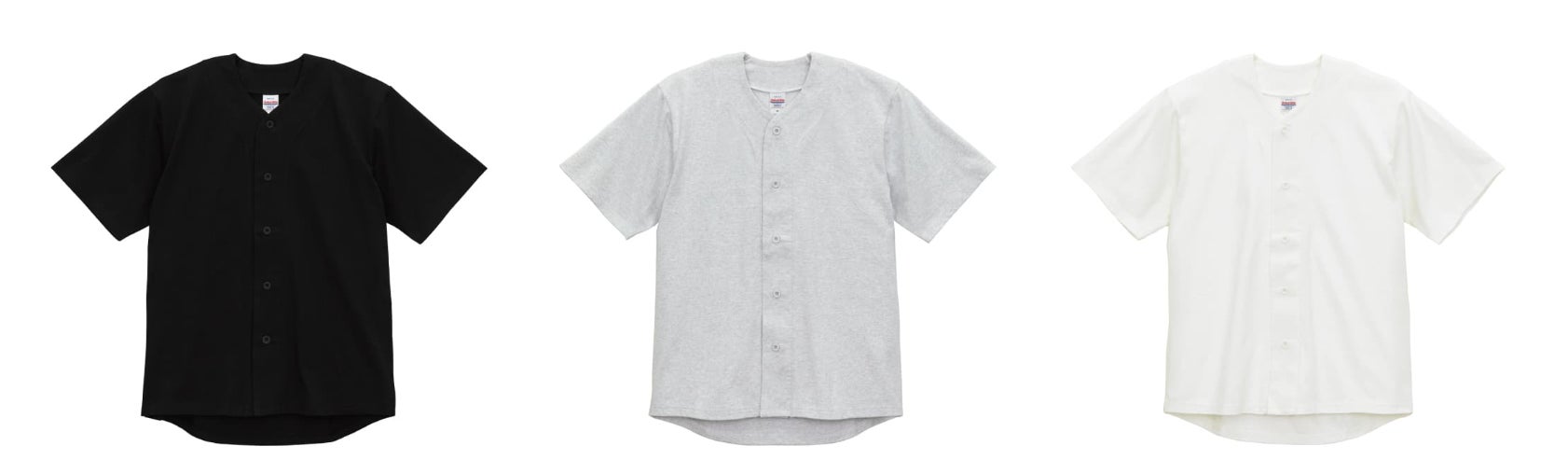 伸縮性ある厚手のコットンジャージー生地を使用したベースボールシャツ。ボタンも同色のマットな質感のものを使用し、とことんシンプルに仕上げました。一般的なベースボールシャツよりも普段使いがしやすいデザインで、前を開けて羽織りとしても着られます。