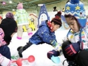 スノーパークでは、雪まき体験や雪上宝さがし、大人気の雪合戦などイベント盛りだくさんです。