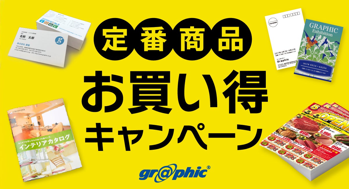 株式会社グラフィック(本社:京都市伏見区、代表取締役社長:西野能央、以下「当社」)はネット印刷事業にて、名刺やチラシ・フライヤー、ポストカード、冊子など印刷の定番商品を対象に、仕様を限定してお買い求めやすい価格でご提供する「お買い得キャンペーン」を開始いたしました。