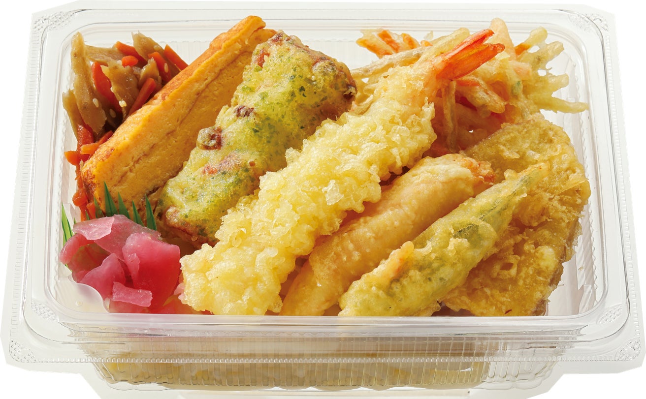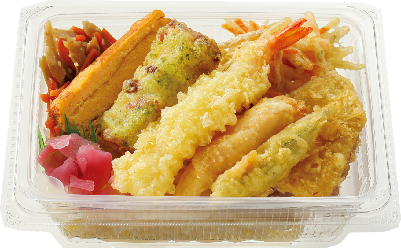 ボリューム満点の一品です。セパレート式で、上段に天ぷら、下段にうどんの入った楽しいお弁当です。