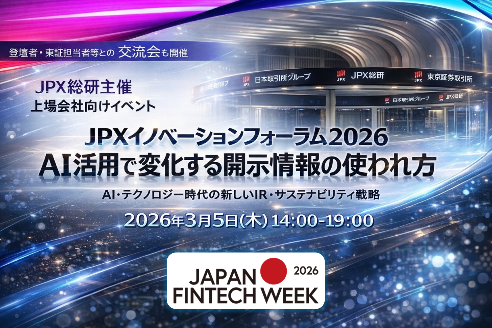【3/5(木) JPX総研主催】上場会社向けイベント『JPXイノベーションフォーラム2026:AI活用で変化する開示情報の使われ方』開催のお知らせ