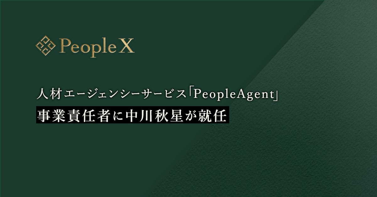 エンプロイーサクセス事業を推進する株式会社PeopleX(本社:東京都渋谷区、 代表取締役CEO:橘 大地)は、スキルベースで適正報酬マッチングを実現する人材エージェンシーサービス「PeopleAgent」事業の責任者に中川 秋星が就任したことをお知らせします。