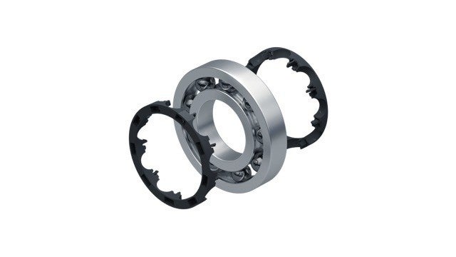 新技術として開発した「幅狭組合せ樹脂保持器」を採用し、NSKの既存技術を組み合わせることで、強度や寿命といった性能は高水準で維持しつつ、小型軽量化、幅狭化、低フリクション化、高速化を実現(従来品に対して外径約10%,幅38%短縮、重量約51%・トルク25%低減)。本開発品の搭載により、電動車駆動ユニットの小型軽量化に加え、軸受の低フリクション化などによって電費向上に貢献します。