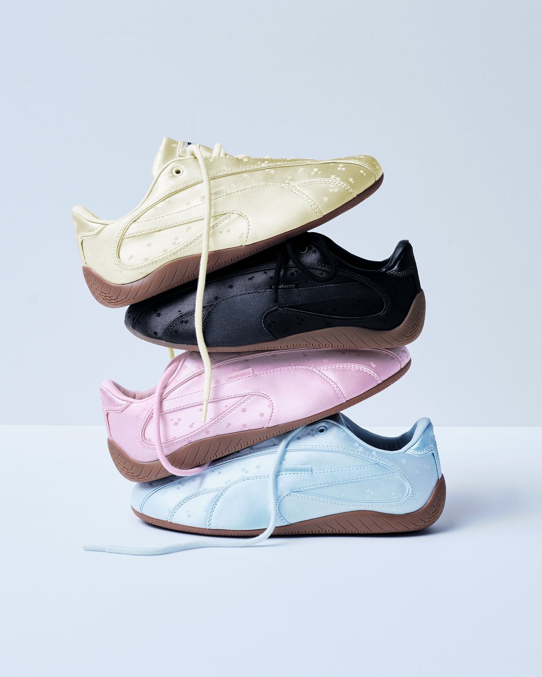 サテンジャカード素材と繊細なマイクロフローラル模様をまとい、これまでにない表情へと進化しました。軽やかさと豊かな表現を纏いつつも、アーカイブに根ざしたスポーツディテールを、テクスチャー、パターン、そして春を思わせる柔らかなカラーパレットによって再解釈。かわいらしくて遊び心がありつつ、タン部分のブランドロゴがアイコニックなアクセントになっています。
