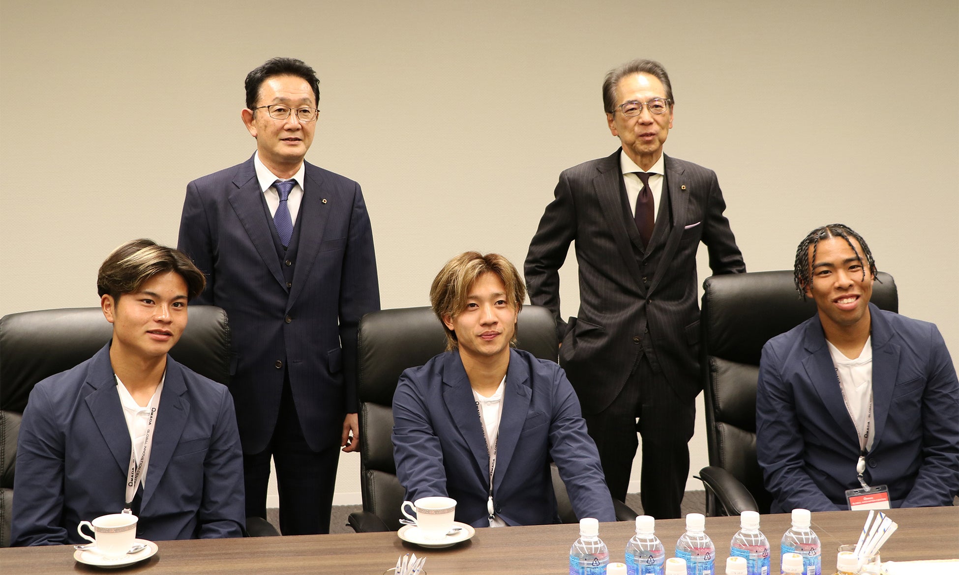 2025シーズン ユニフォームパートナーの就任にあたって、湘南ベルマーレ会長の眞壁潔氏、選手3名が、1月16日(木)にアマダ本社を表敬訪問されました。