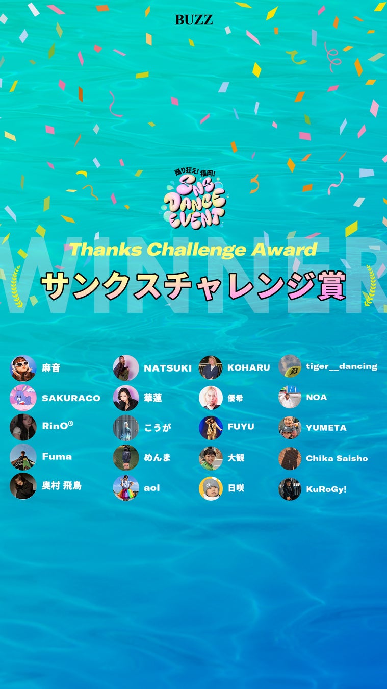 関東を中心に60店舗以上のレンタルスタジオを運営するSTUDIO BUZZは、2024年6月15日(土)から8月31日(土)まで開催したSNSダンスイベント『スタバズチャレンジ3 in 福岡』の受賞者が決定しましたのでお知らせいたします。